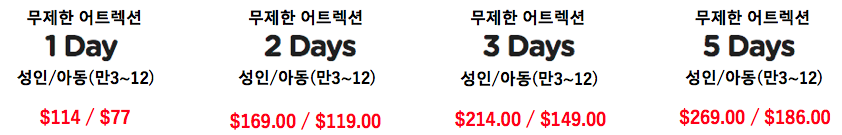 – All Inclusive Pass의 경우 어트렉션을 입장하시는 날부터 1 day 카운트 됩니다.